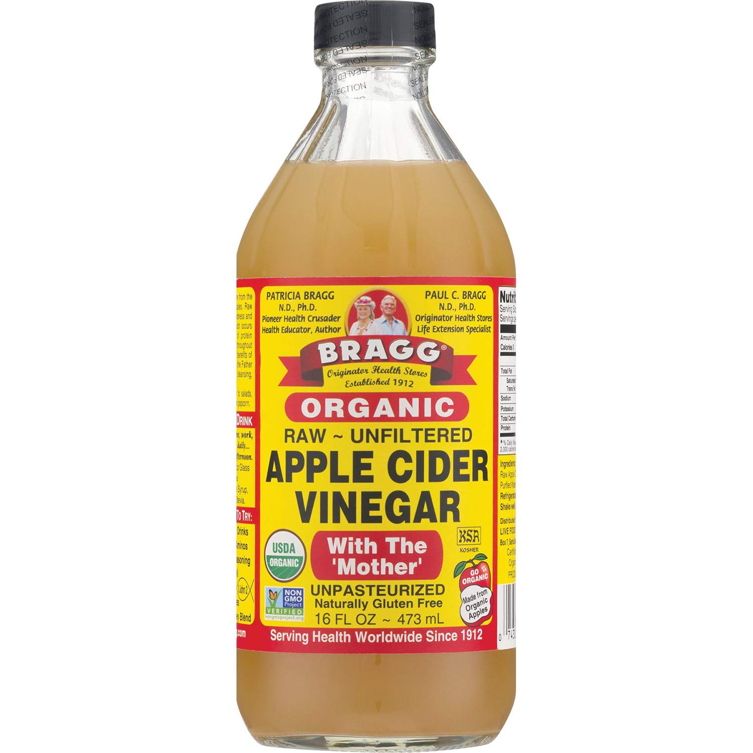 Bragg Organic Raw Apple Cider Vinegar is made from delicious, healthy, organically grown apples. Processed and bottled in accordance with USDA guidelines, it is Certified Organic by Organic Certifiers and Oregon Tilth; and is Kosher Certified. Bragg Organic Raw Apple Cider Vinegar is full of zesty natural goodness. Non-GMO Certified. It’s a wholesome way to add delicious flavor to salads, veggies, most foods, and even sprinkle over popcorn.