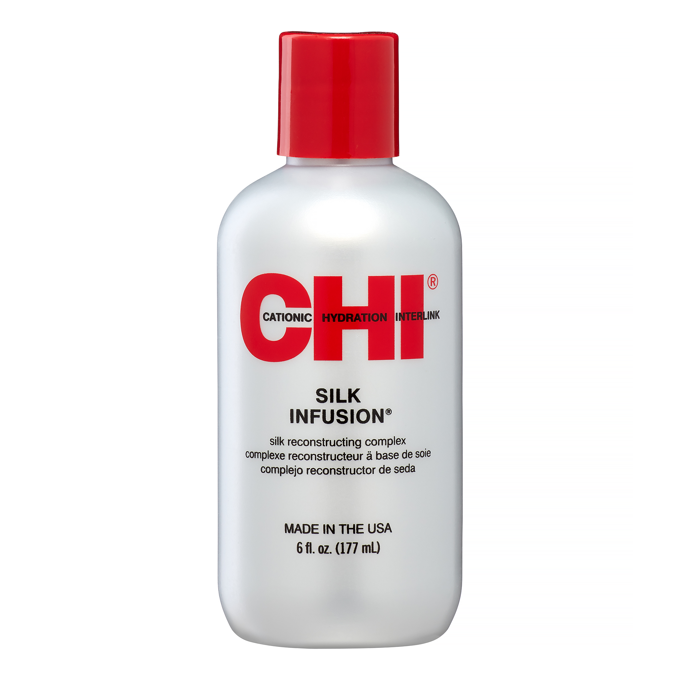 CHI Silk Infusion is a rich, reconstructing complex made with pure natural silk, wheat & soy proteins. This leave-in treatment helps hydrate and moisturize hair, as well as improve luster & manageability to provide silky-smooth strands. The Chi Silk Infusion Reconstructing Complex provides heat protection from thermal styling and unveils incredibly softer, brighter & nourished hair before and after styling. It is enriched with pure silk, along with wheat and soy proteins that can penetrate each strand, helping to strengthen your hairstyle. With a compact size, you can take this convenient bottle with you wherever you go. Farouk chi silk infusion is specifically developed to work in conjunction with the chi styling tool product lines Chi silk infusion is a rich leave-in-treatment formulated with pure silk, wheat, and soy proteins Used on skin it can provide a soft, smooth feel For external use only. Avoid contact with eyes.