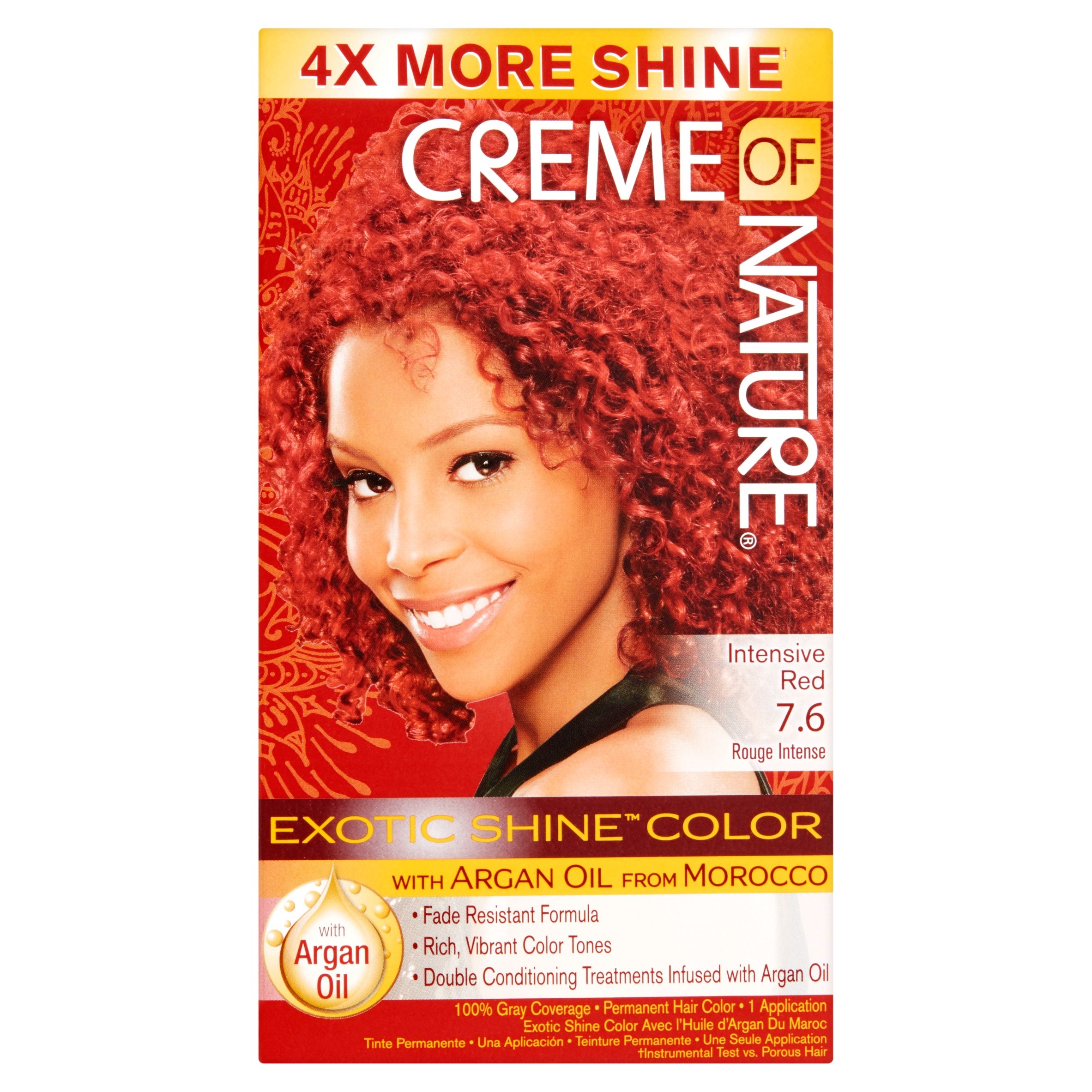 Creme of Nature Exotic Shine Color is a permanent hair color that is infused with double the conditioning power of Argan Oil and strengthening Micro-Sphere technology. The first of its kind, Exotic Shine Color will provide rich, long-lasting color results. Plus, it strengthens, conditions, and adds Exotic Shine.