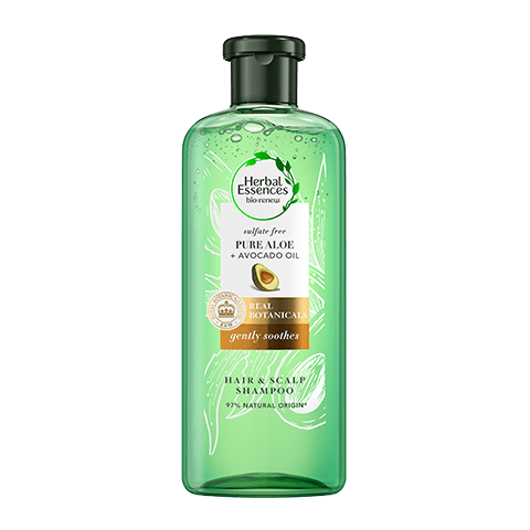 Herbal Essences shampoo soothing formula infused with Pure Aloe and Avocado oil will leave your scalp soothed and your hair nourished from root to tip.