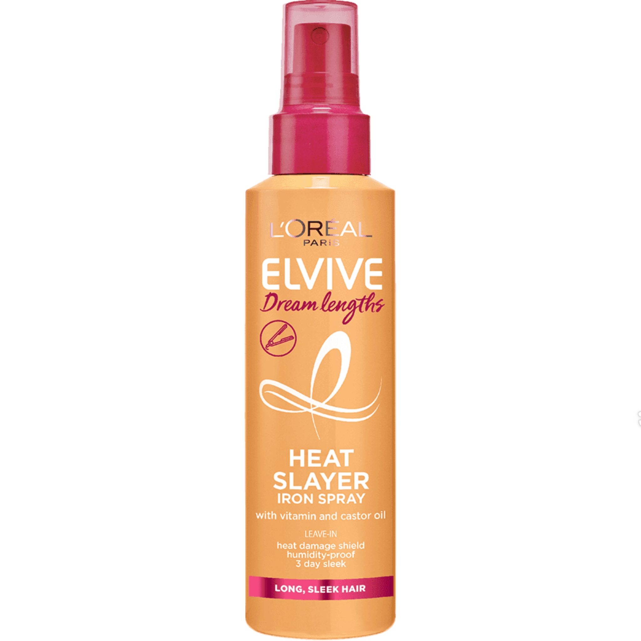 Discover Elvive Dream lengths Heat Slayer spray by L’Oreal Paris for sleek hair that lasts, part of the in-between washes style extender range, to style hair and maximise care without water. It protects and smooths hair whilst styling keeping hair sleek and frizz-free for up to 3 days straight*! The formula is powered by Genamine-si technology, moisturising agents offer a lightweight milky formula that cares for the hair and eases manageability. With a heat shield of up to 230°C heat protection* protecting your hair from damage- hair is sleek, soft and protected. L’Oreal Elvive Dream Lengths Heat Slayer is effective on long hair that’s damaged, dry or frizzy. Ideal for achieving a straight sleek hair style. To apply, after washing spray directly onto lengths and ends of damp to dry hair, style your hair with your usual heat tools.