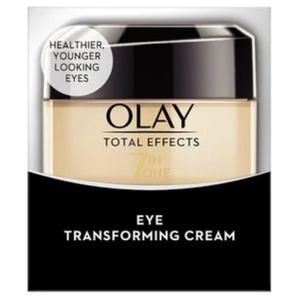 Olay Total Effects 7-in-1 Eye Transforming Cream is a daily eye treatment with a proven vitamin-rich complex that defies seven signs of ageing around your eyes for a younger-looking around-eye area. It visibly smoothens fine eye lines and eye wrinkles, reduces appearance of dark circles, enhances brightness around the eyes, reduces the look of puffiness, instantly evens skin tone appearance, smoothens and evens skin texture, replenishes moisture. Younger and healthier-looking skin around your eyes, today and tomorrow.